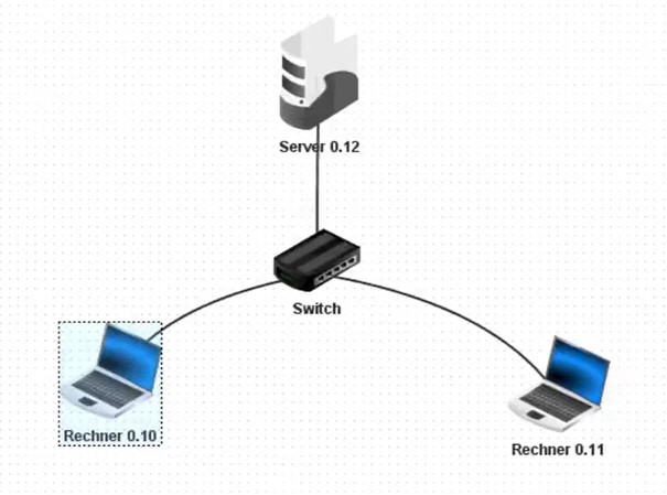 - Erweitere dein Netzwerk entsprechend dem Bild. Denk daran, dem neuen Rechner auch eine IP-Adresse zu geben.