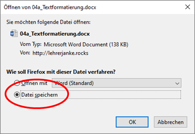 - Lade anschließend diese vier Dateien auf deinen Computer herunter, finde sie in deinem Dateisystem und verschiebe sie in den Ordner Informatik.